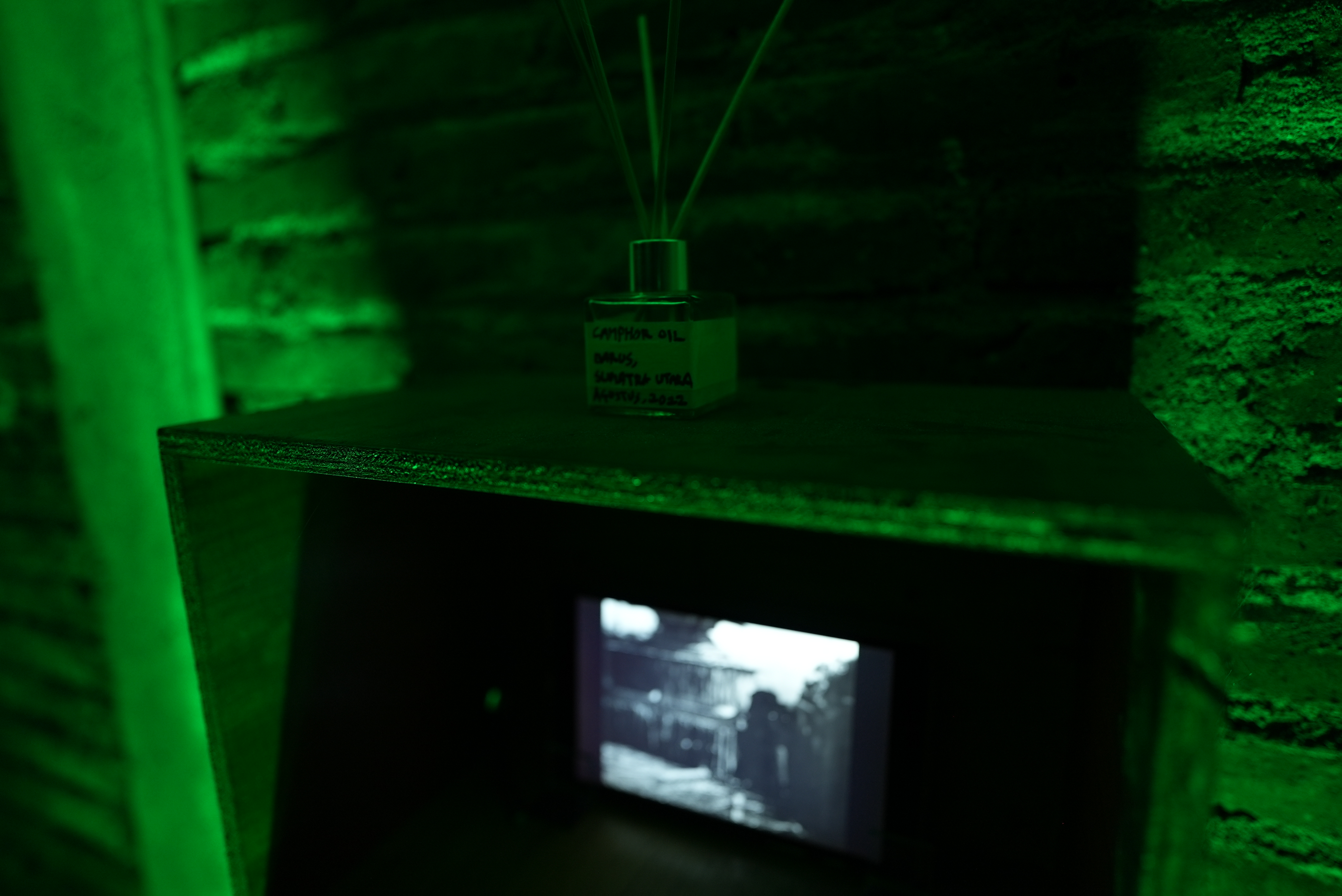 In this performance, I explore storytelling as an intimate sharing practice through hand massage. The performance serves as a means to remember and embody the information gathered during my research. The camphor balm melts into scents and warmth on the skin, intertwining with the stories to transform into a living memory.